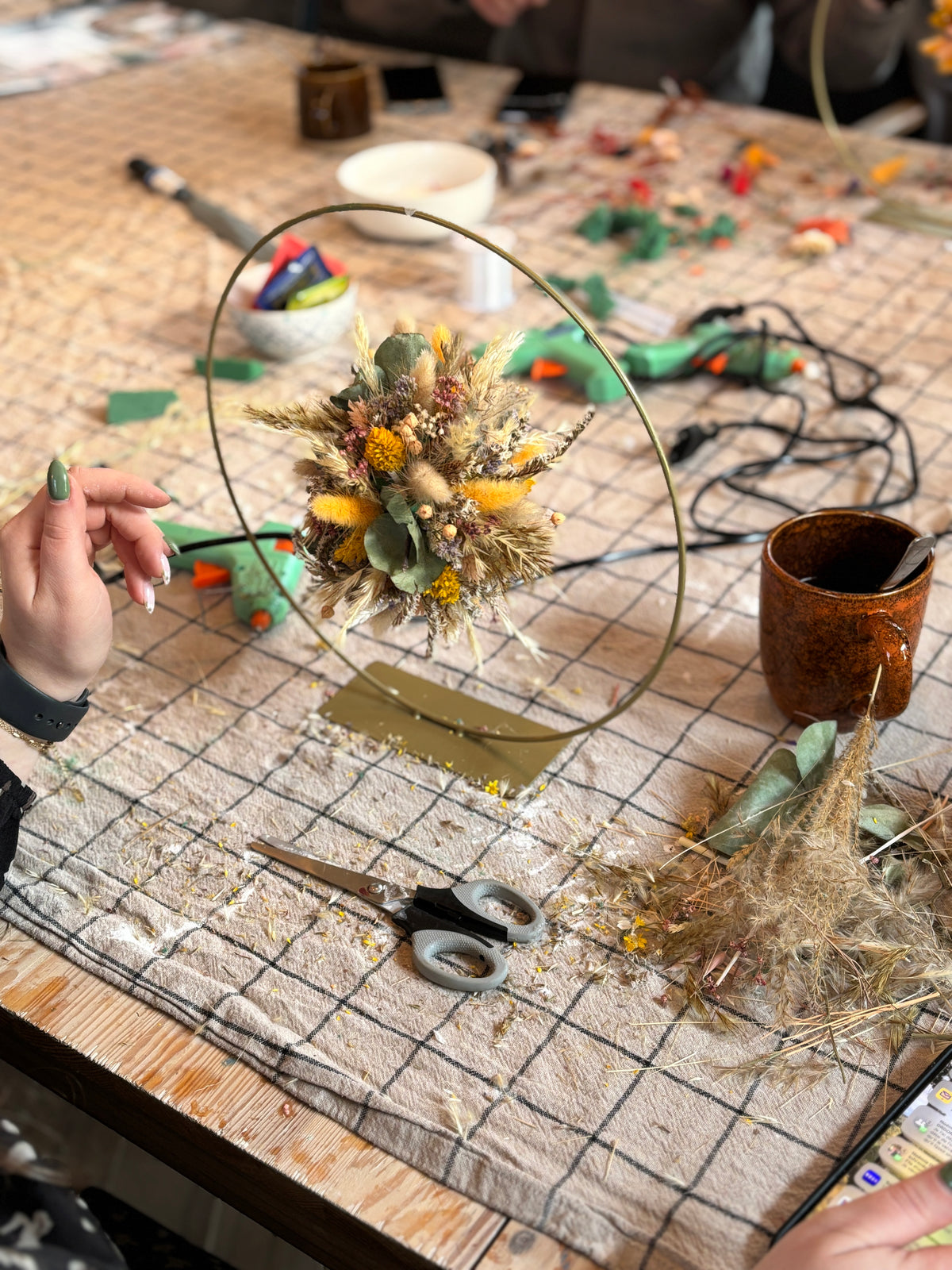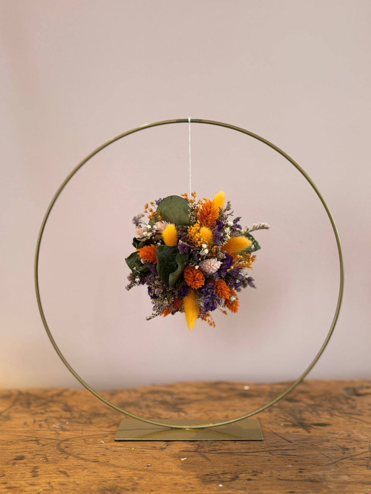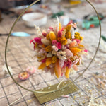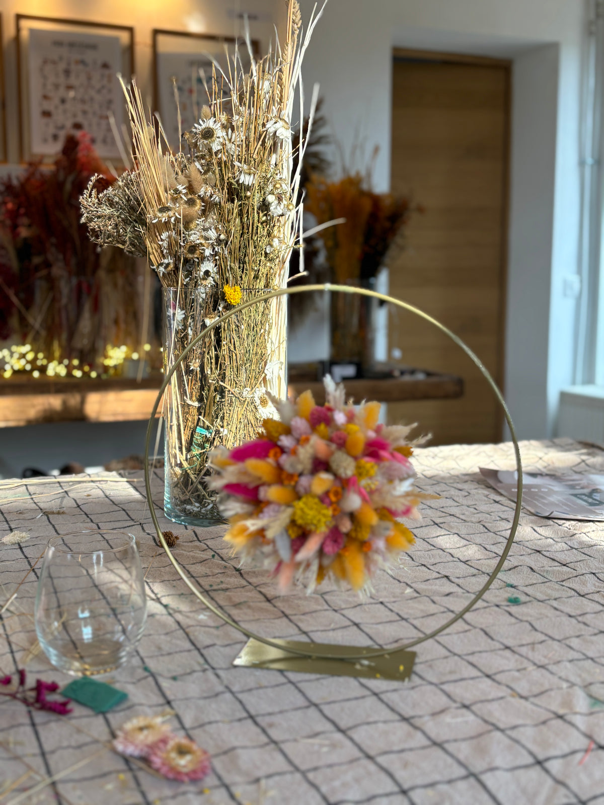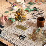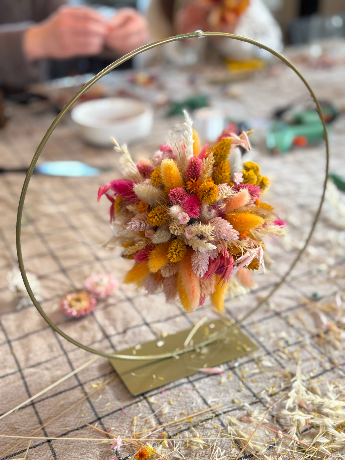 Créez votre propre suspension de fleurs séchées ! Participez à cet atelier et repartez avec une suspension florale unique, confectionnée par vos soins à partir d'une vaste sélection de fleurs séchées et stabilisées.