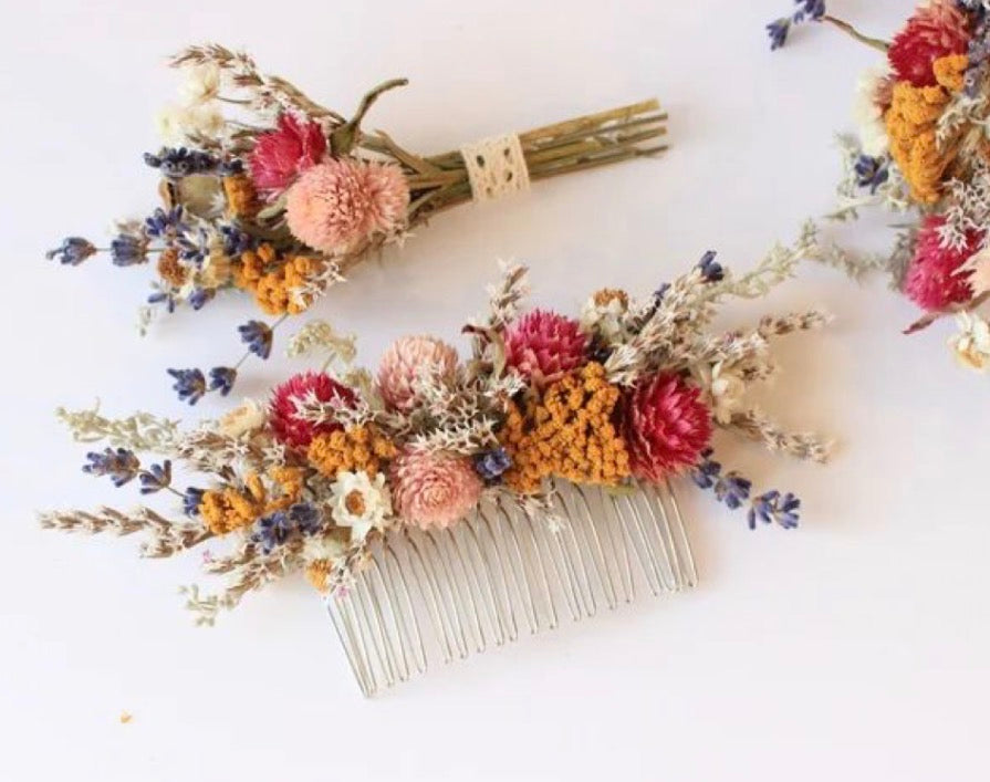 Partagez un moment créatif entre amis et réalisez un joli peigne fleuri grâce à un large choix de fleurs séchées.